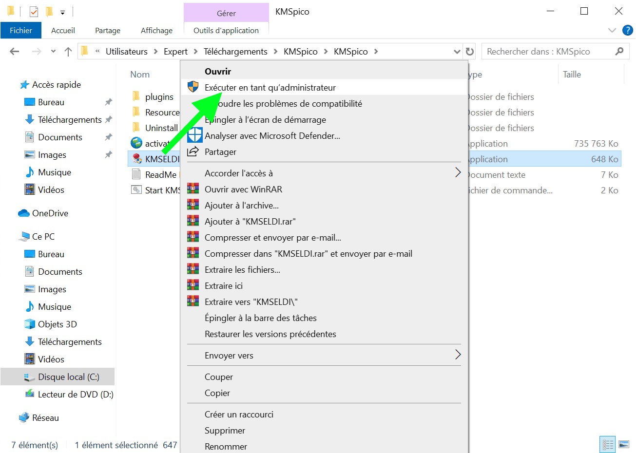 - Cherchez ensuite le fichier KMSELDI.exe et double-cliquez dessus pour l’ouvrir.
